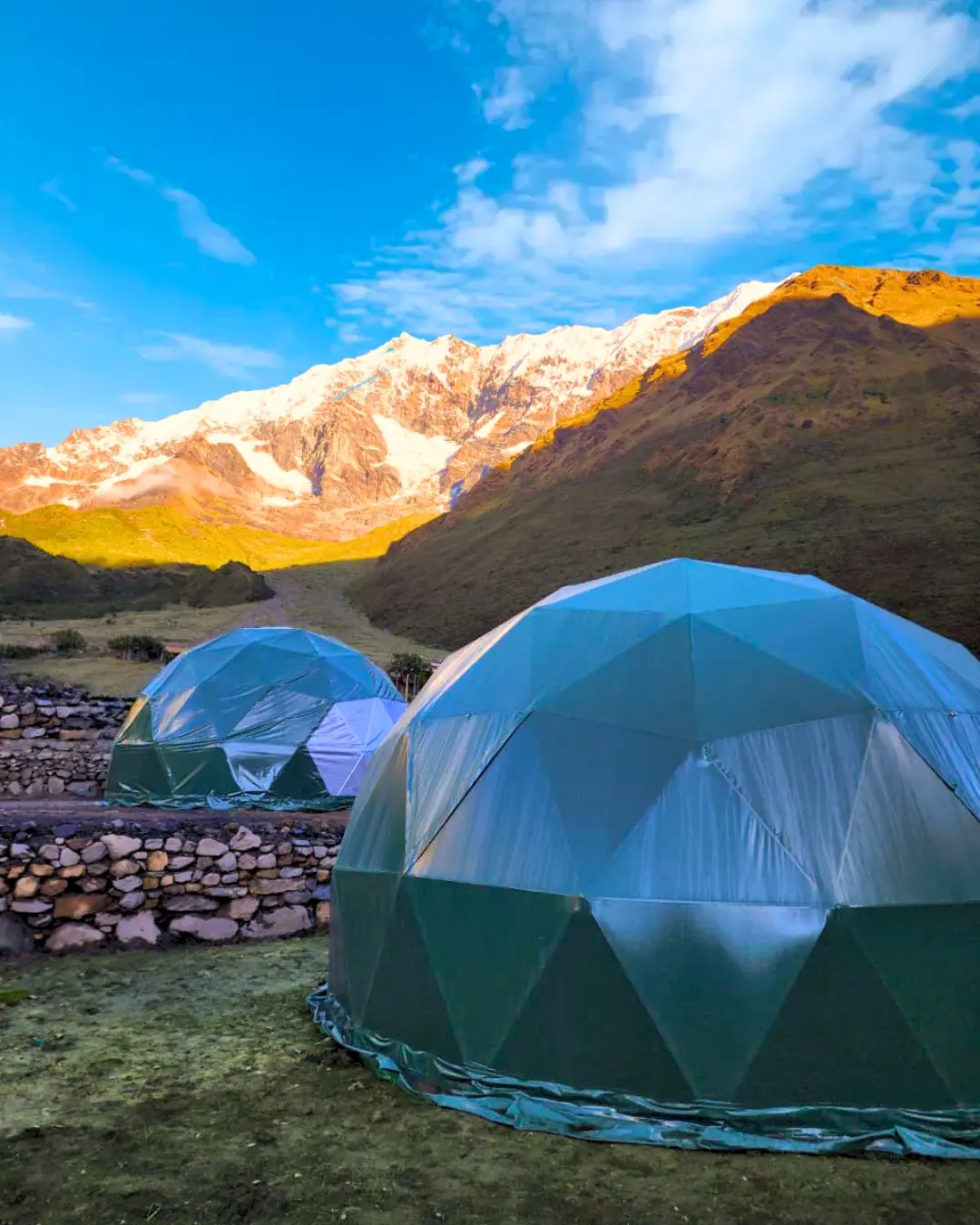 From here we will walk for about three moderate hours to Soraypampa. You will pass by through Inca Channels and admire the mountain views. Once at the Soraypampa trailhead, have a delicious and hearty lunch while enjoying the spectacular views of the Humantay Mountain (5,900m/19,356ft) and Salkantay Mountain (6,217m/ 20,396ft) glaciers. You will be installed in our exclusive panoramic domes and have some free time after lunch to relax before our next hike!